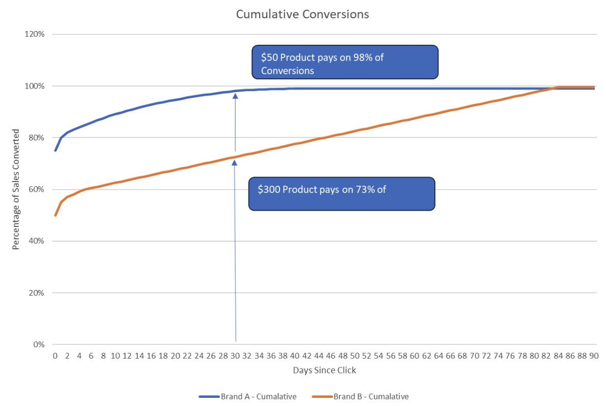 Most programs will pay on a 30-day window, so let’s use that number to illustrate the potential leakage of conversions.